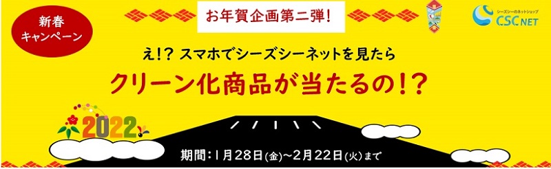 【2】【NET SHOP】新春キャンペーン!お年賀企画第2弾! 2/22(火)迄 ![]() 只今、新春キャンペーン《お年賀企画第2弾!》を開催中です! CSC NETで商品を検索する時や商品を購入する際、端末は何を利用されていますか!? CSC NETには、いつでもどこでも気軽に検索できるよう【スマホ】サイトがあることをご存じでしょうか? 知らなかった!という人も、いつもスマホから利用しているよ!という人にも朗報です! 新春キャンペーン・お年賀企画第2弾【え!?スマホでCSC NETを見たらクリーン化商品が当たるの!?】を開催しております!! CSC NETのスマホページより下記の対象商品ページを見て頂いたお客様に下記商品を抽選でプレゼントします!! この機会にぜひCSC NETのスマホサイトを登録して快適にクリーン化を進めて下さいね♪ 《対象商品》 ■組み立て式クリーンベンチ(CSバルーン付き) 型式:CCB-5066 (1台) サイズ:W700×D500×H550 ■小型LEDライト クリーンルームライトミニ 型式:CSPV-1000(10台) ■ウェットワイパー用ステンレス容器&ワイパーセット 型式:CS135(10個) ■イオン発生器 CS-JJ(5台) 【応募方法】 1)【スマホ】から【CSC NETページ】を閲覧して対象商品ページに記載している 《抽選コード》を確認。 2)新春キャンページの特設ページにある【応募する】をクリックし必要事項を 記載の上抽選コードを記入するだけ! 3)あとは賞品が当たるのをドキドキしながらお待ちください。 ※当選者の発表は、賞品の発送をもってかえさせて頂きます。(3月より順次発送) ※ご住所・ご部署等、記載がない場合、商品がお送りできないことがございます。 必ず、ご明記の上ご応募ください。 ※法人様対象キャンペーンとなります。個人での応募はできません。 予めご了承下さい。 ※お一人様一回のみご応募可能です。弊社が複数応募と判断した場合は無効と させて頂きます。 |