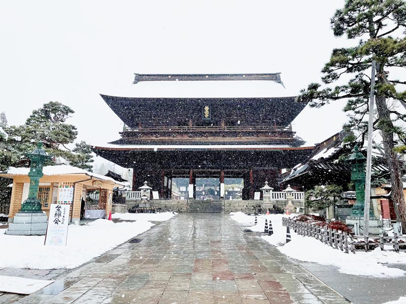 写真は長野県の善光寺の山門です。国宝である本堂を筆頭に重要文化財の数々が醸し出す厳かな雰囲気に圧倒されます。特におすすめは本堂にあるお戒壇巡りです。自分が目を開いているのか瞑っているのかさえ分からなくなるほど真っ暗な空間を壁だけを頼りに進みます。甘味処が建ち並ぶ仲見世通りもおすすめですよ。 |