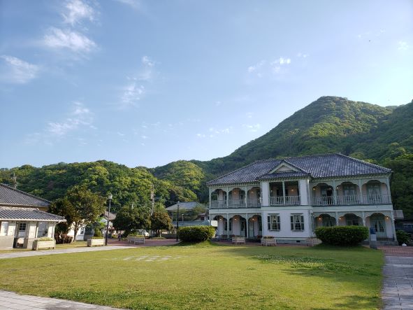 今回の写真は、世界遺産に登録されている「三角西港(みすみにしこう)」です。明治時代から残る建物や、当時の姿を復元した洋館があります。また、その景観を邪魔しないように街灯がガス灯のようなデザインになっていて石畳の港を散歩するとレトロな非日常が味わえます。 |