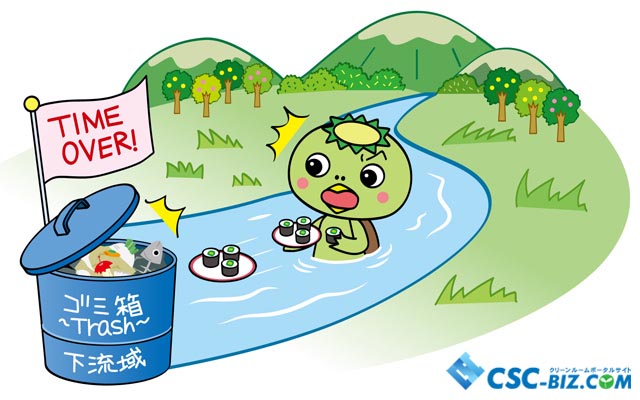 泳ぎが達者なカッパさんが・・・上流から下流に? シーズシーではこれまで数十社のクリーンルーム診断を実施してきました。その中 には、年間で数百万円の改善が図られたお客様もいれば、1か月で元の状態に戻っ てしまった。というお客様もおり、その効果の幅は様々です。 そこで、豊富にある診断事例の中から塵埃付着の要因が同様だった内容を「クリー ンルーム診断NG事例」と称し、今回からシリーズで紹介して参ります。 クリーンルームを同じ人が毎日見ていると、いつの間にかそれが当たり前となり、 改善の方向性が見えなくなりがちですが、シーズシーは初めて見るクリーンルーム を他目線で2日ほどかけて診断するため、問題点が多数見えてきます。 そこで、数字的データは公表できませんが、会員の皆様の現状と照らし合わせて頂 き改善のきっかけとして参考にして頂けるよう、NG事例としてご紹介致します。 「クリーンルーム診断NG事例」の第一回目は、≪上流と下流の管理≫です。シー ズシーでは、クリーンルーム内の気流を判りやすく「上流と下流」で表現していま す。上流は【クリーンエアーの吹き出し口】です。下流は、床吸引であれば【リタ ーン用グレーチング面】で、側面リターン方式では【リターン口】になります。 あるお客様で『この付近での不良が多い』との依頼があり、その場所を確認すると、 【リターン口】近辺でした。クリーンルームでは、≪リターン口=ゴミ箱≫と考え ることが無難です。特に建築時、コストダウンを理由に吹出口の数に対してリター ン口の数を極端に少なく設計する事でリターン口近辺の風速が高くなり、慣性衝突 がおこることで製品に塵埃が付着するリスクが極端に上がるため、注意が必要です。 また上流から出たクリーンエアーは、人体や装置からの発塵に加えて堆積塵埃の舞 上りなどと共に全てリターン口に向かってきます。これはハンドリングによるクリ ーンセル生産などでも同様です。ハンドリング作業の場合、多くの塵埃は人由来か ら付着する塵埃が多くなるからです。 そして、手袋・クリーンウエアからの直接的なクロスコンタミに加えて多いのが、 上流に作業者がいることにより、クリーンウエアから生じたポンピング発塵の塵埃 が下流の製品に間接的に付着する事例です。 改善策としては、前面からクリーンエアーを流すことで≪製品から人への気流≫に 変え、製品への塵埃付着を防ぐことが可能です。この上流・下流の見極め管理が非 常に重要なポイントになるかと思います。この気流を簡単に作り出し、管理できる ツールがいわゆるクリーンベンチとなります。 この上流と下流の視点でクリーンルーム全体を見てもらうと何か改善のヒントにな るかもしれません。 *…*…*…*…*…*…*…*…*…*…*…*…*…*…*…*…*…*…*…*…*…*…* 【2】組立式クリーンベンチ CSC NET(シーズシーネット)にて販売中!! 10月のOPEN以来、続々と商品を掲載しております。その中でご紹介したいの が、≪CSバルーン付クリーンベンチ≫です。 通常のクリーンベンチと異なり、CSバルーンが構成品に組み込まれています。 層流性を高め、ゴミの舞上がりを抑制することで製品への塵埃の付着を防止します。 デスクにピッタリのサイズなので、RACCAR(ラッカー)をご利用の会員様も ベンチ内で測定すれば、サンプル採取後の誤差を防げます。