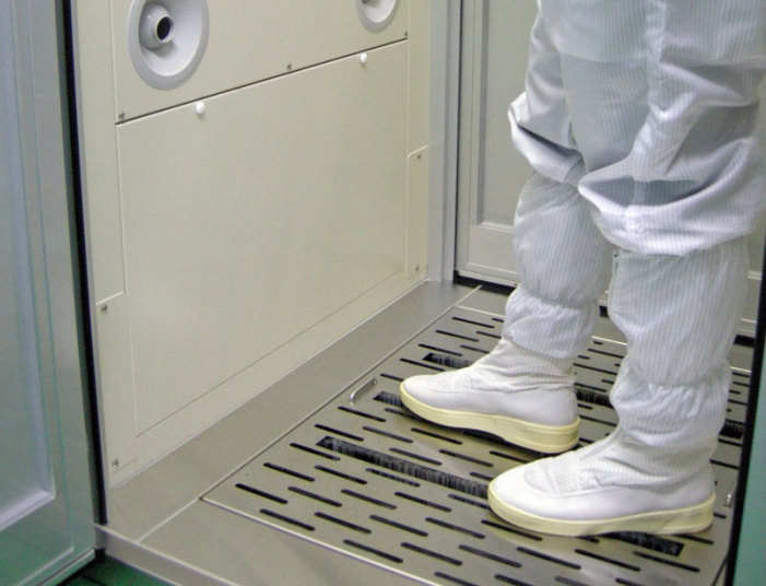 また、クリーンウエアは長繊維でできておりそれ自体からの発塵はありませんが、付着異物には注意が必要です。着用しているとクリーンウエアと言えども次第に汚れていきます。ウエアが汚いまま入室すると、クリーンルーム内も汚くなります。従って、できるだけ異物の持ち込みを最小限にすべきです。現代の技術では、異物持込み防止アイテムとして一番期待できるのは、エアシャワーでしょう。エアシャワーは強い風でウエアから異物を飛ばし落とすのですが、要注意点がいくつかあります。 1)風が当たる場所。風が当たらない場所は、異物が落ちないので、体をぐるぐる回したりしてまんべんなく風を当てるようにする工夫が必要です。 2)エアシャワーの異物回収能力。回収能力が不十分な場合、せっかく落とされた異物がエアシャワー内に残され、再付着の恐れがあります。従って、異物回収能力が高いエアシャワーを選択しましょう。また、定期的にエアシャワーの中を清掃するのも大事です。 3)静電気による再付着。風とウエアの摩擦で静電気が発生し、異物がウエアに再付着することがあります。この問題を解決するには、エアシャワーに除電装置を設置すれば良いでしょう。 4)エアシャワーでも不得意な異物がある。平べったい異物が比較的にエアシャワーで落としにくいものです。その弱点を埋めるためには、粘着ローラーを使えば良いでしょう。 これらの課題を一つずつクリアしていけば、ウエアに関する異物対策の効果が相乗効果でより大きくなるでしょう。 |