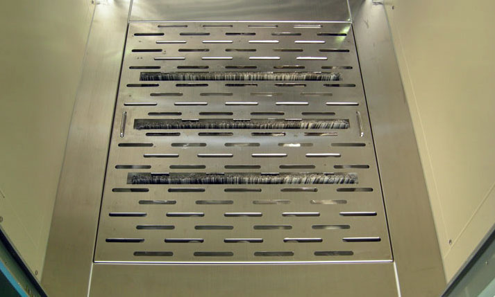 | クリーンブーツは最も床に接近する部分なので、床の汚れが付着しやすいと予想されます。靴底についてですが、床接触部の異物除去と、凹部の洗浄の双方が必要となります。床接触部は、クリーンマットで除去できますが、凹部は吸引タイプまたはブラシタイプの靴底洗浄機器が良いでしょう。 参考 新事例8「クリーンマットの効果について」