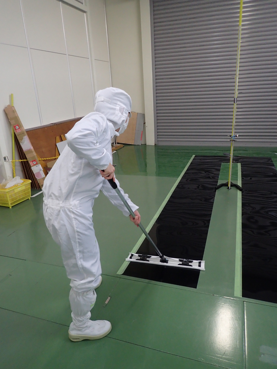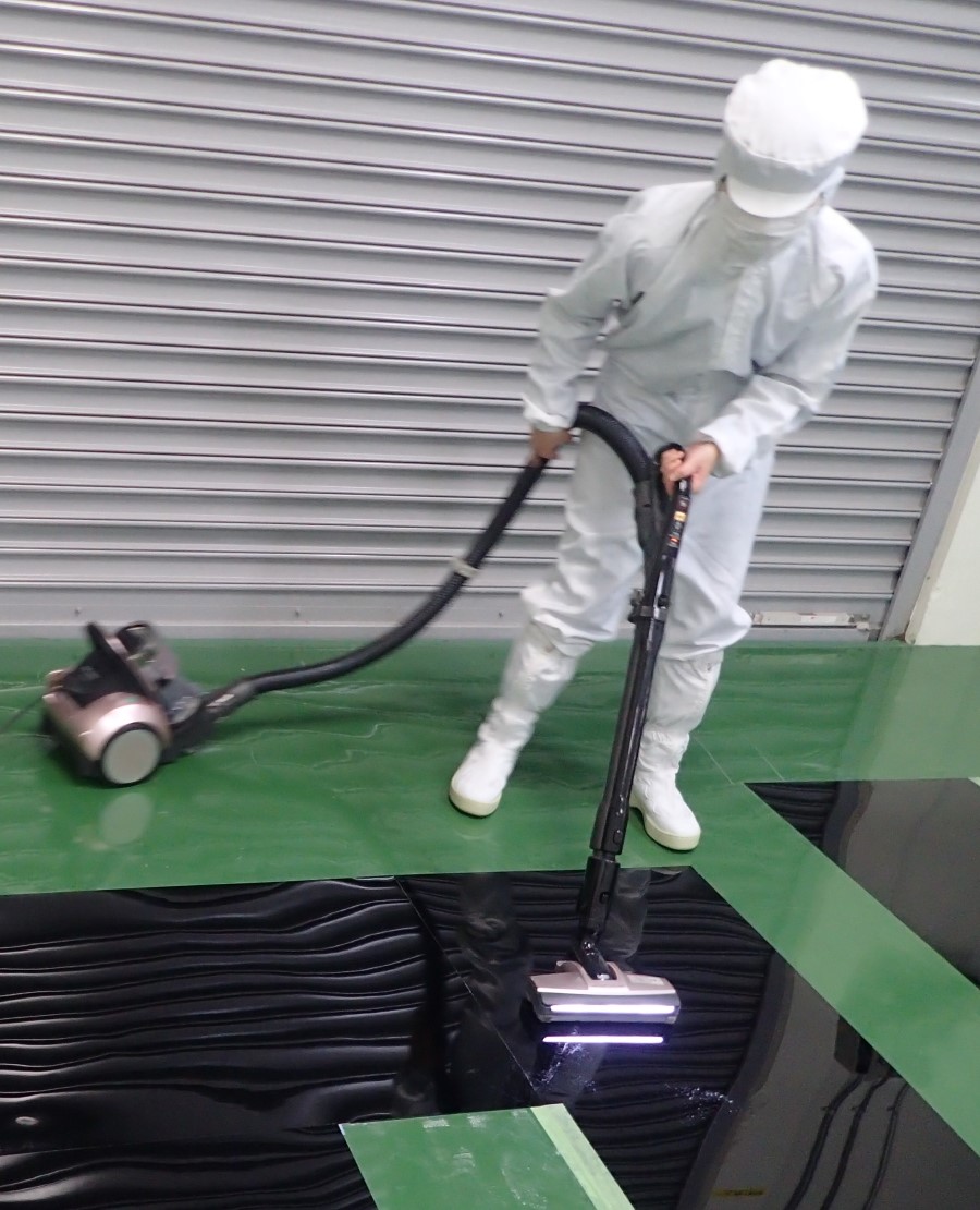 3)LTKワイパーと60cm幅モップで塩ビシート上を一周掃除します。