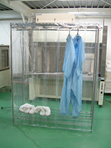 最近はクリーンロッカーを使用しないケースが増えています。クリーンロッカーは清浄化エアを給気しながらウエア等を保管する設備ですが、エアシャワーのように除塵効果があるわけではありません。逆に詰め込みすぎると他のウエアからのホコリが交差汚染したり、カーテンに付着したホコリがウエアに着くことで汚染されたりする可能性があります。前室がクリーンルームまたは準クリーンルームであれば、クリーンロッカーは特に必要ではないでしょう。