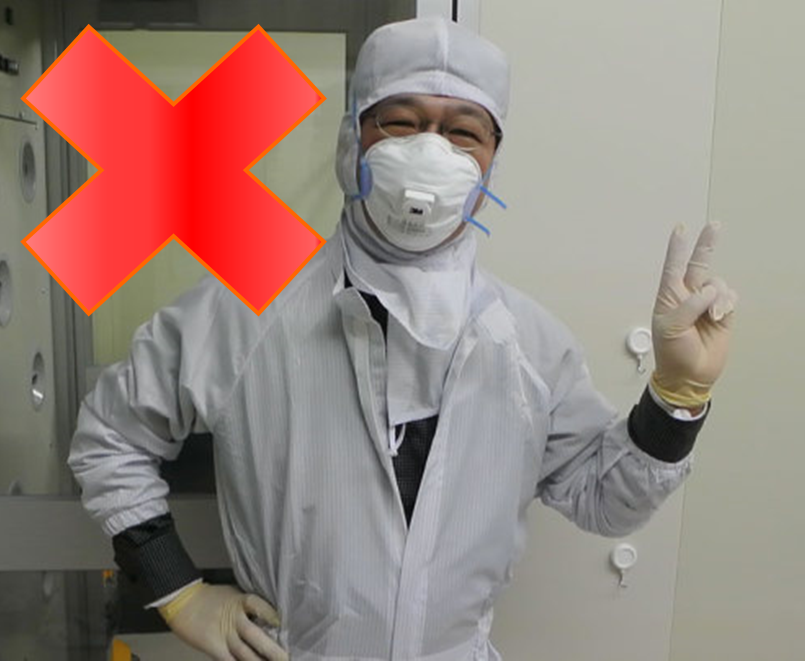 特に、襟元や袖口は動作に伴って発塵すると言っても過言ではありません。そのため、多少息苦しくても襟元・袖口はきちんと締めるようにし、クリーンルーム入室前には鏡の前に立ち、着衣の乱れがないか確認することを習慣にしましょう。