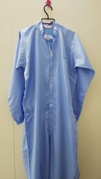 ![]() クリーンルーム内にて比較実験用の 2ウエアを曝露中 |