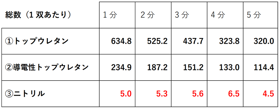 異物対策の観点からは、ニトリル手袋がもっとも付着防止効果があると言えそうです。