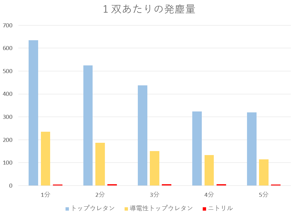 スタンプテストでもニトリル手袋は発塵が確認されず、一番いい結果となりました。