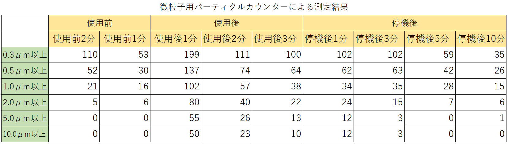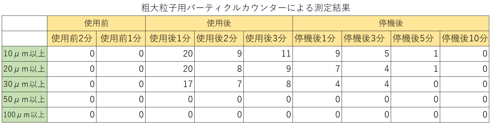 【使用機器】・クリーンルーム用掃除機: CV−G12CT 日立産機システム製・パーティクルカウンター(微粒子): KC−31 リオン製 ・パーティクルカウンター(粗大粒子): KC−20A リオン製 |