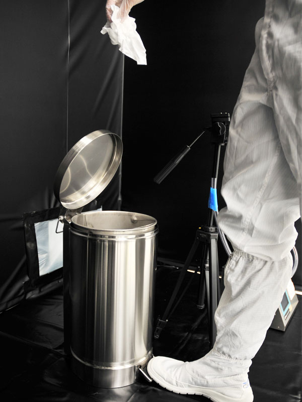 クリーンルームウエアが実際にどれくらいのゴミを透過するのかを 検証し、製品NGに繋がるゴミの大きさに合わせた生地を選定という新しい基準を提案します。