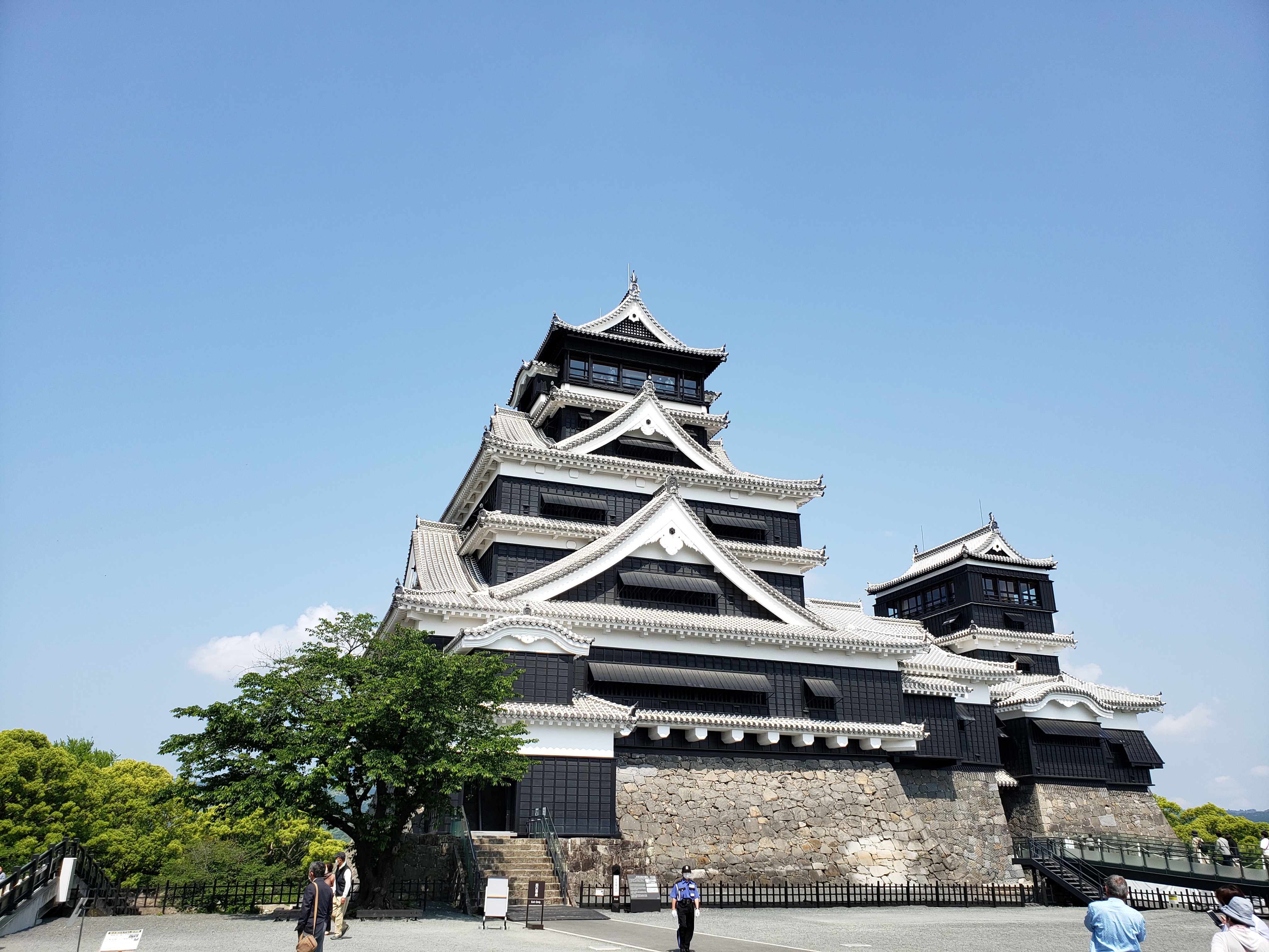 | 写真は熊本市にあるの熊本城です。平成28年には地震で大きな被害を受けたことも記憶に新しいかと思います。修復を終えた大天守と小天守はまさに圧巻です。案内してくださるボランティアの方をはじめ、地元の方々に愛される所以が伝わってくる佇まいでした。 |