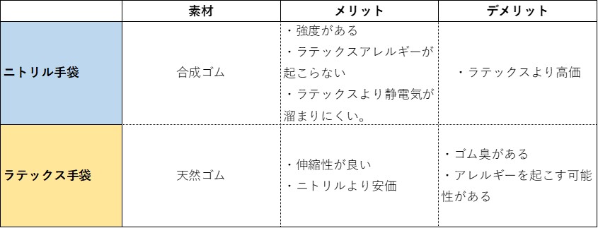 ★結果の前に、『ニトリル手袋』と『ラテックス手袋』の特徴をご紹介いたします。 |
