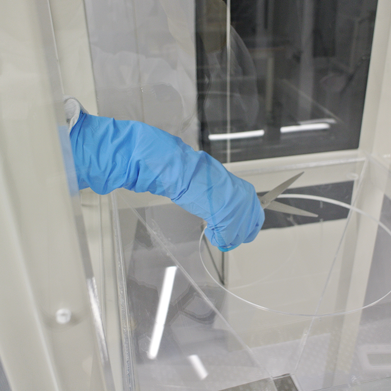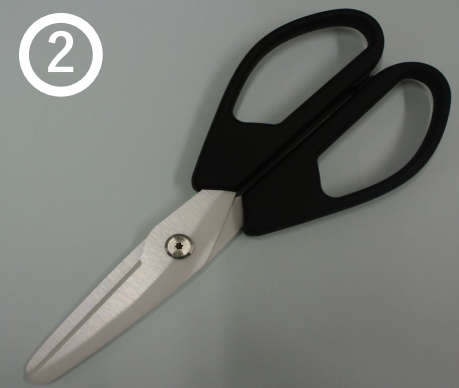①実験に使用するハサミを清掃する。 発塵試験装置内にハサミを握った状態で1分間静止し、パーティクルカウンター測定値0カウントを確認する。 |