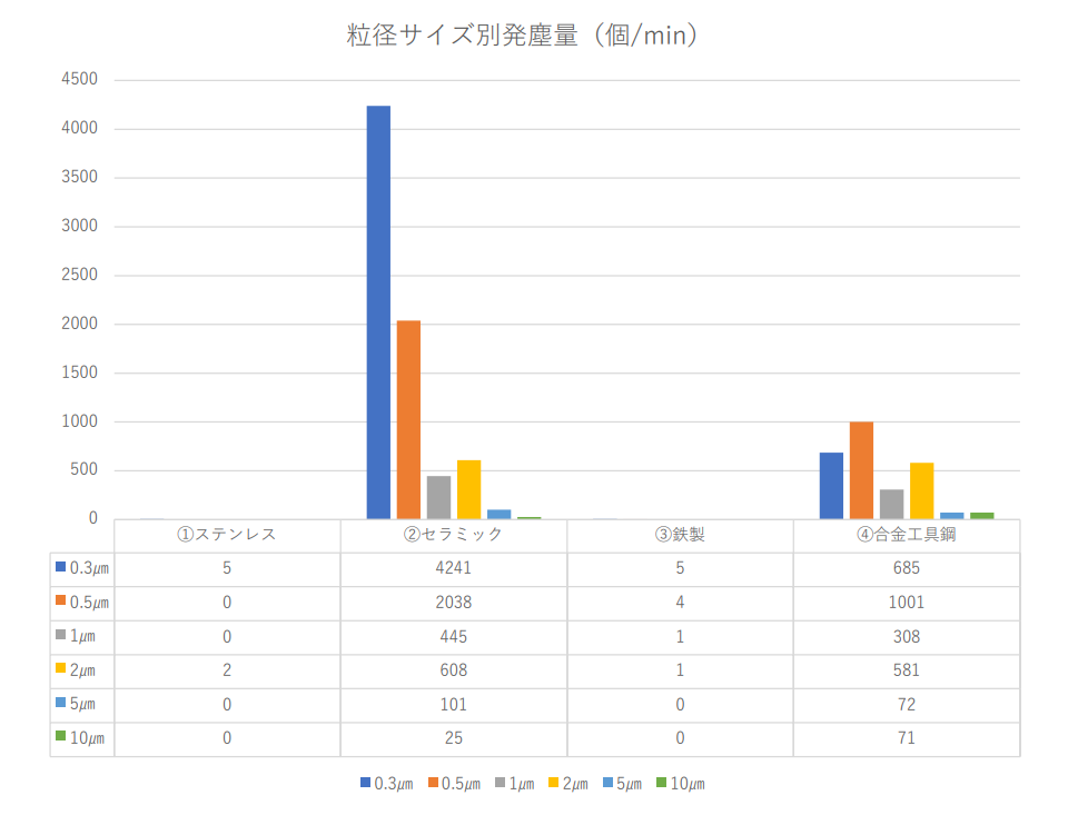 | ③2分目の発塵量は、ハサミの付着異物の影響が考えられるため、3分目の結果を測定値として採用する。 |