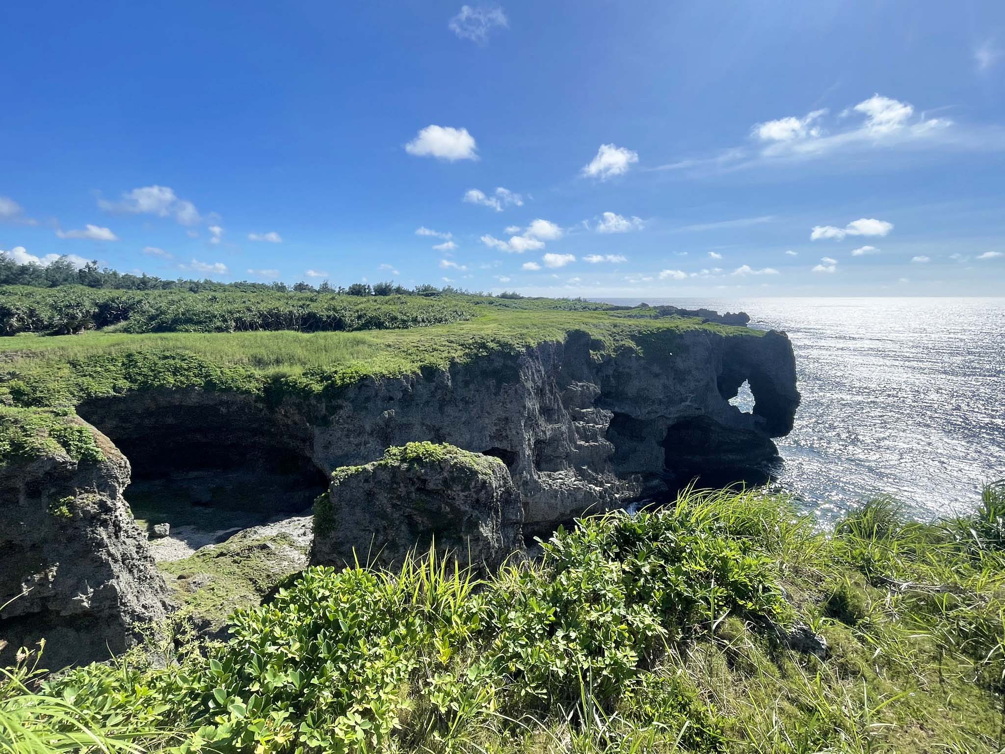 写真は沖縄本島にある「万座毛(まんざもう)」です。不思議な名称ですが、琉球王朝時代の尚敬王がこの場所を訪れた際に「万人が座れるほど広い毛(草地)」と言ったことに由来しているそうです。 波の浸食によってできた像の鼻のような崖が特徴的です。絶壁からは、エメラルドグリーンの美しい海が一望でき極上の開放感を味わえます。 |