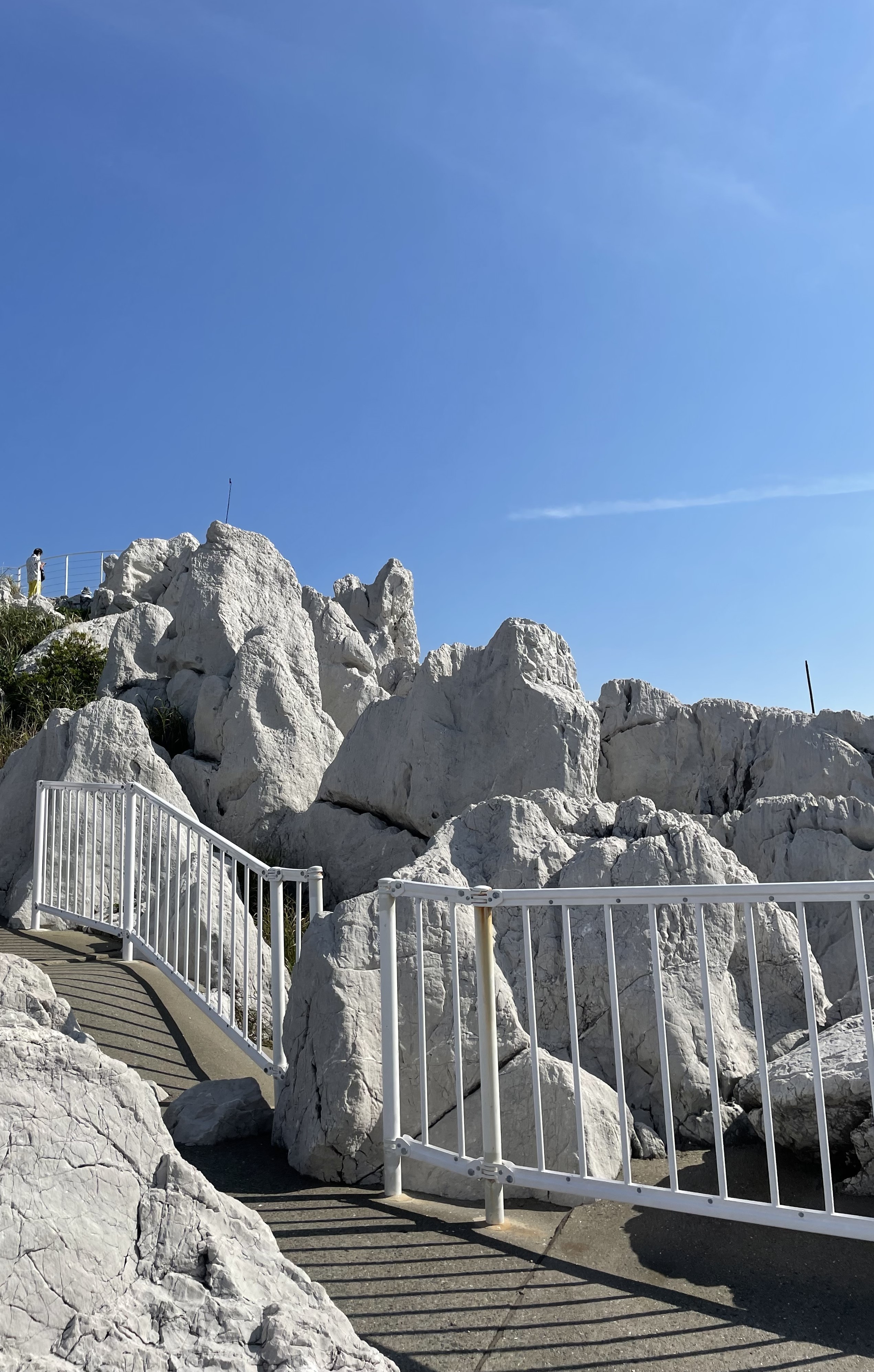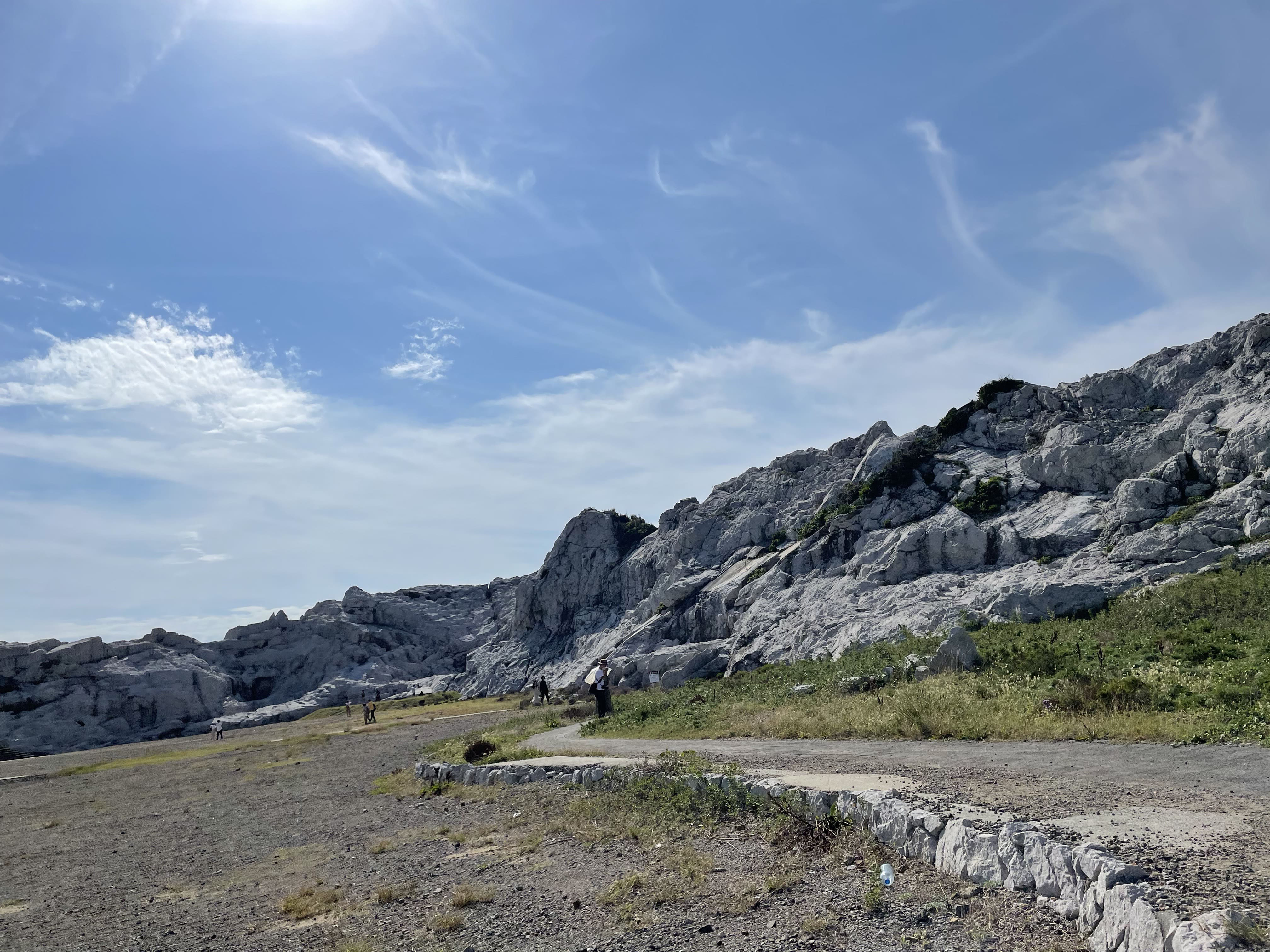 写真は和歌山県の白崎海洋公園(しらさきかいようこうえん)です。石灰岩が風や波によって浸食されてできた独特の地形が広がり、真っ白な岩と青い海のコントラストが非常に美しかったです。その美しさから「日本のエーゲ海」と称されるほどですが、エーゲ海に行ったことがないので似ているのかどうかはわかりませんでした。 |