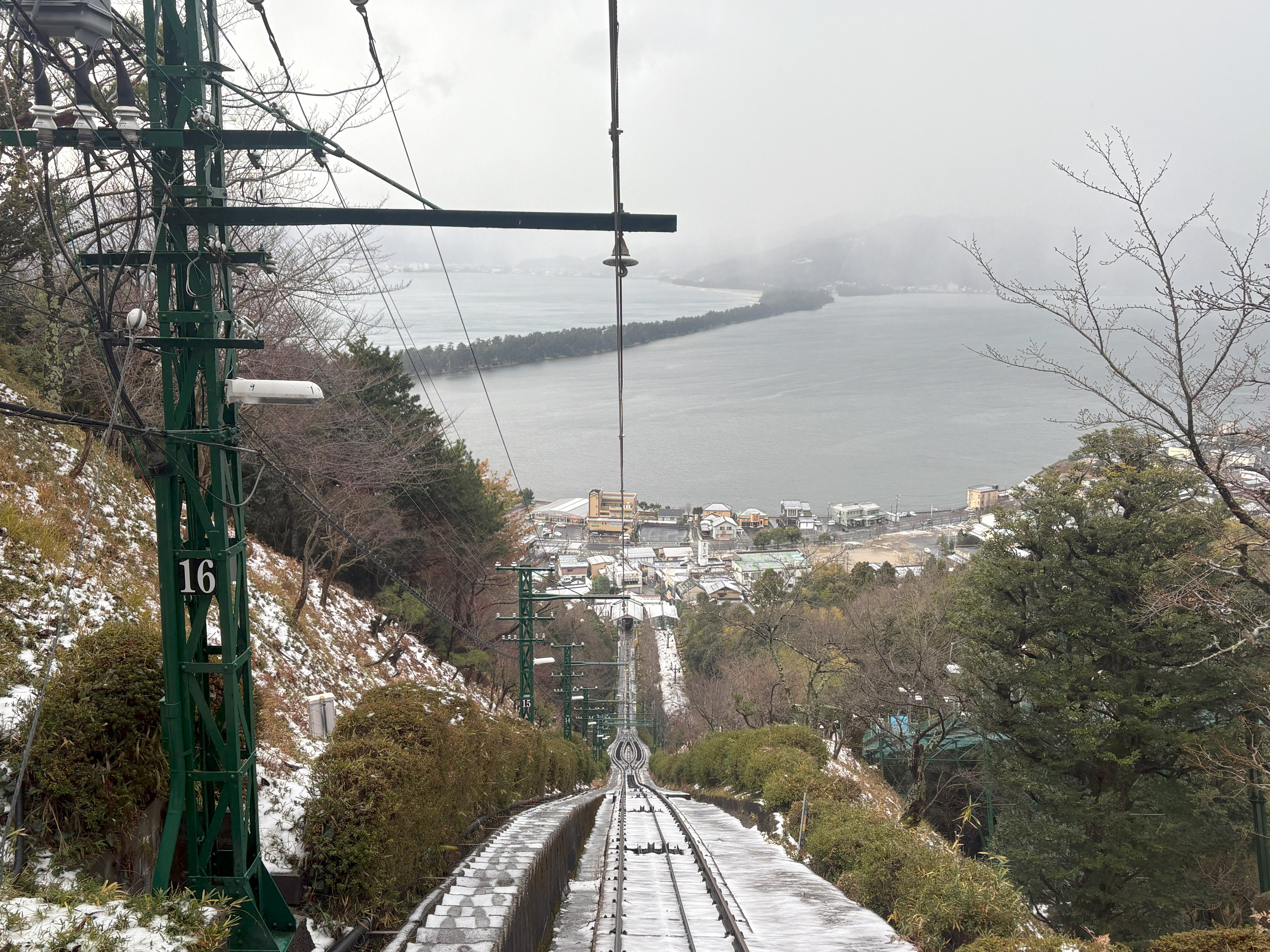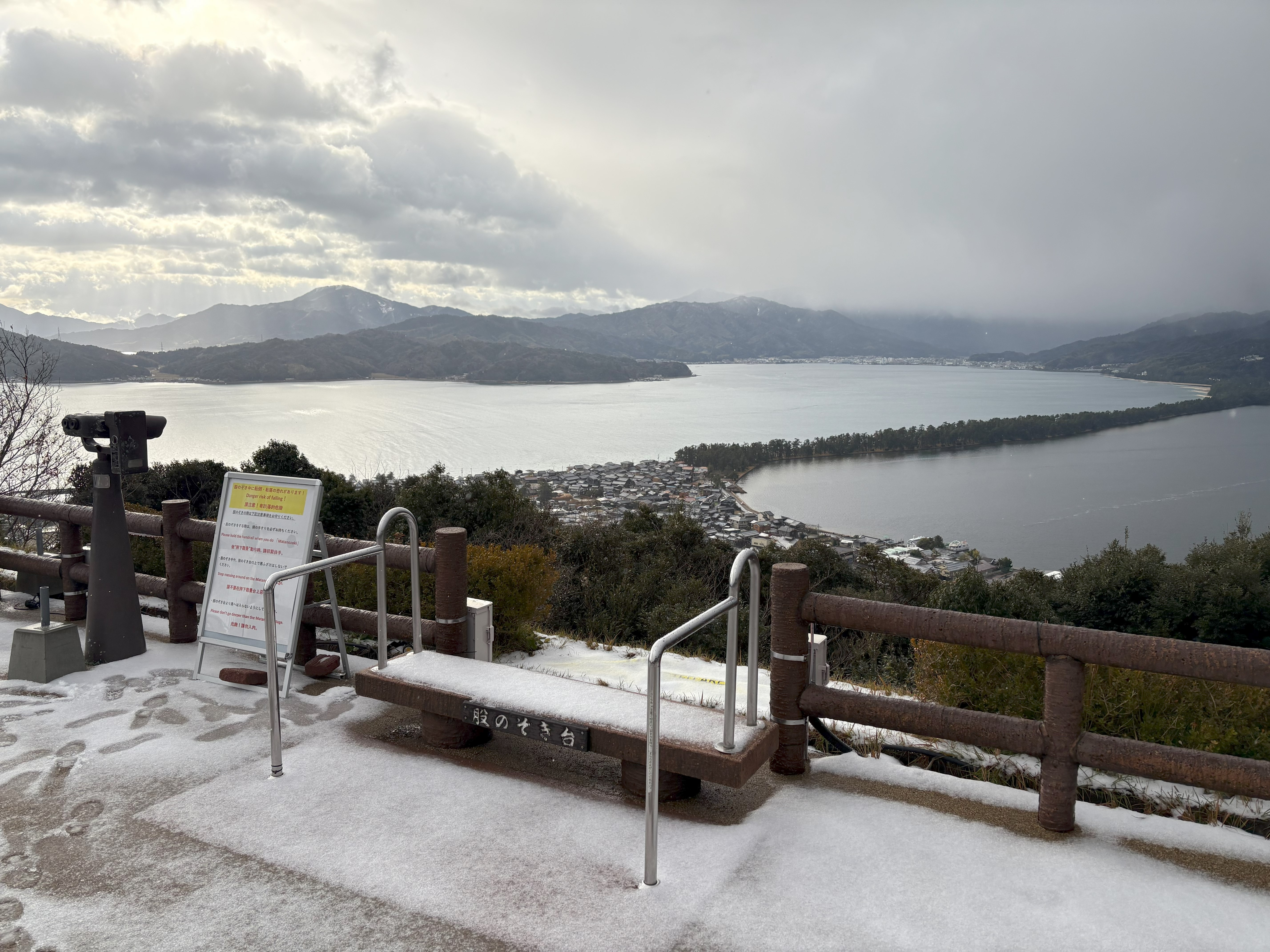 | 写真は言わずと知れた日本三景の一つ、京都府の「天橋立」(あまのはしだて)です。展望台に立ち股の間から覗くと天に架かる橋のように見えることからそう呼ばれています。展望台まではリフトかケーブルカーで向かいます。今回はケーブルカーを選択しましたが暖かい季節であればリフトも気持ちが良さそうです。これからの時期は雪化粧をまとった景色が望めます。 |